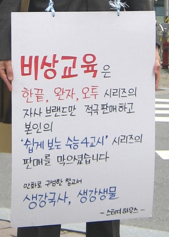 사정을 알아보니 비상교육이 12월 자사 서적유통망인 비상교육동부와 비상교육서부를 통해 서울에 2000부를 권당 9500원에 배포하면서 영향을 받았기 때문이라는 것이다.