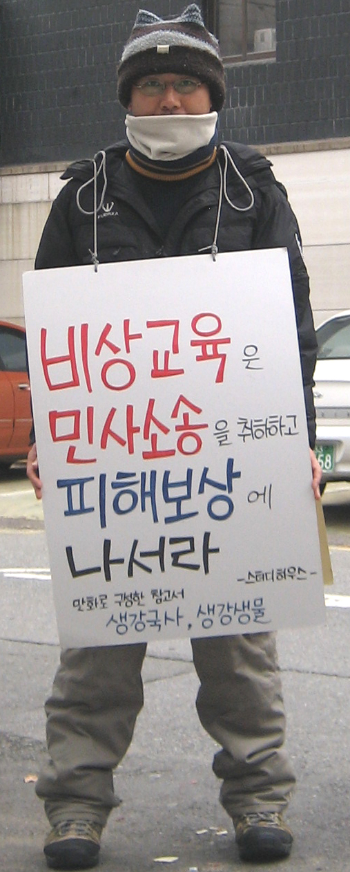 이에대해 출판사 측은 교재 저작자를 상대로 지급한 선인세 반환청구소송을 제기하는 등 대응에 나섰다. 이에 저작자는 1인시위에 나섰고 출판사측은 억지에 의한 명예훼손이라고 법적대응을 검토하고 있어 양측간 공방이 확산되고 있다.